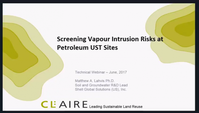 Videos & Podcasts - Screening Vapour Intrusion Risks at Petroleum Underground Storage Tank Sites